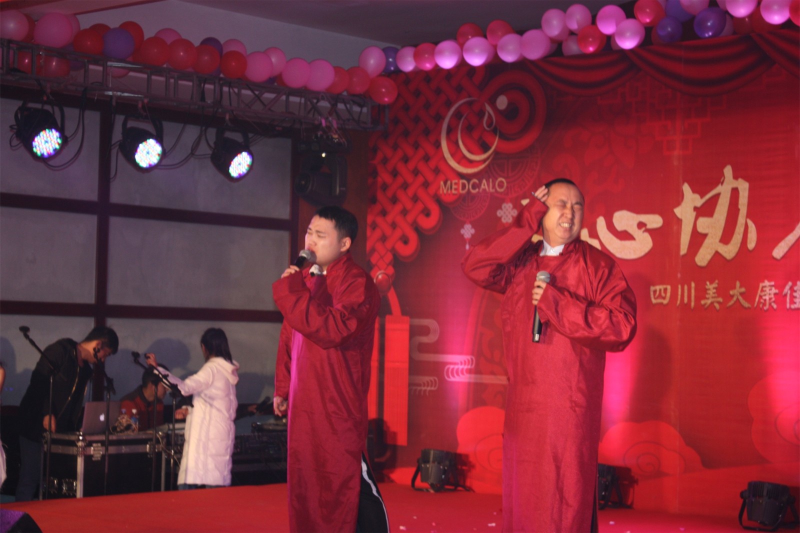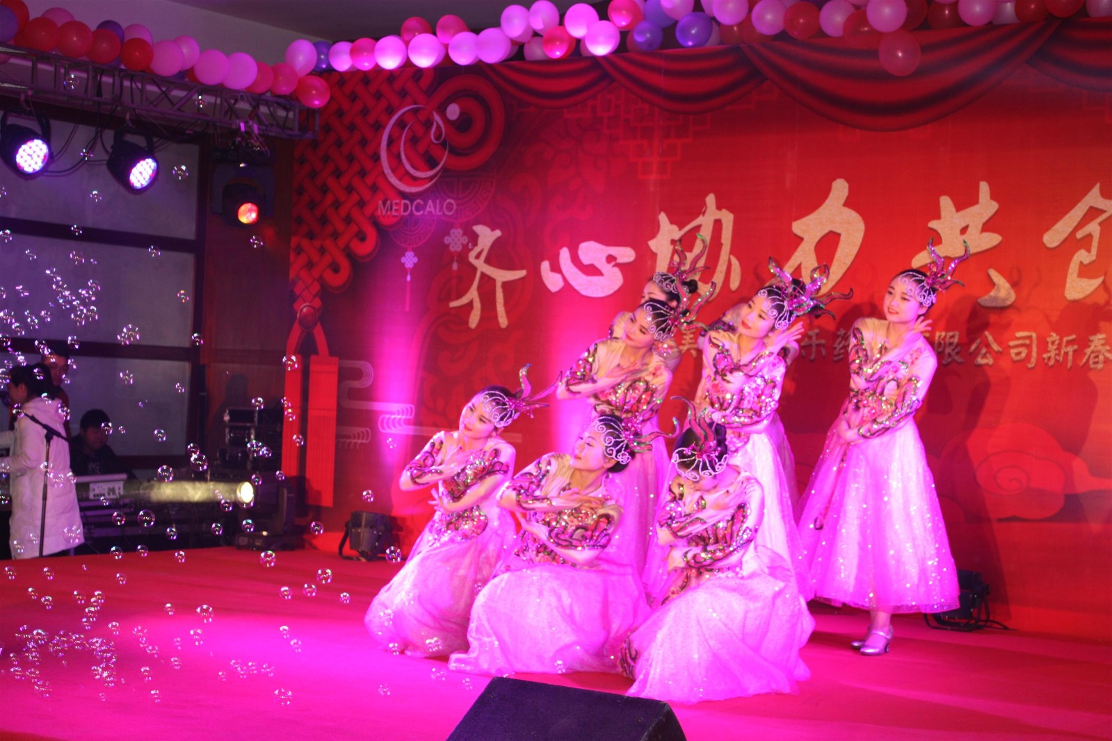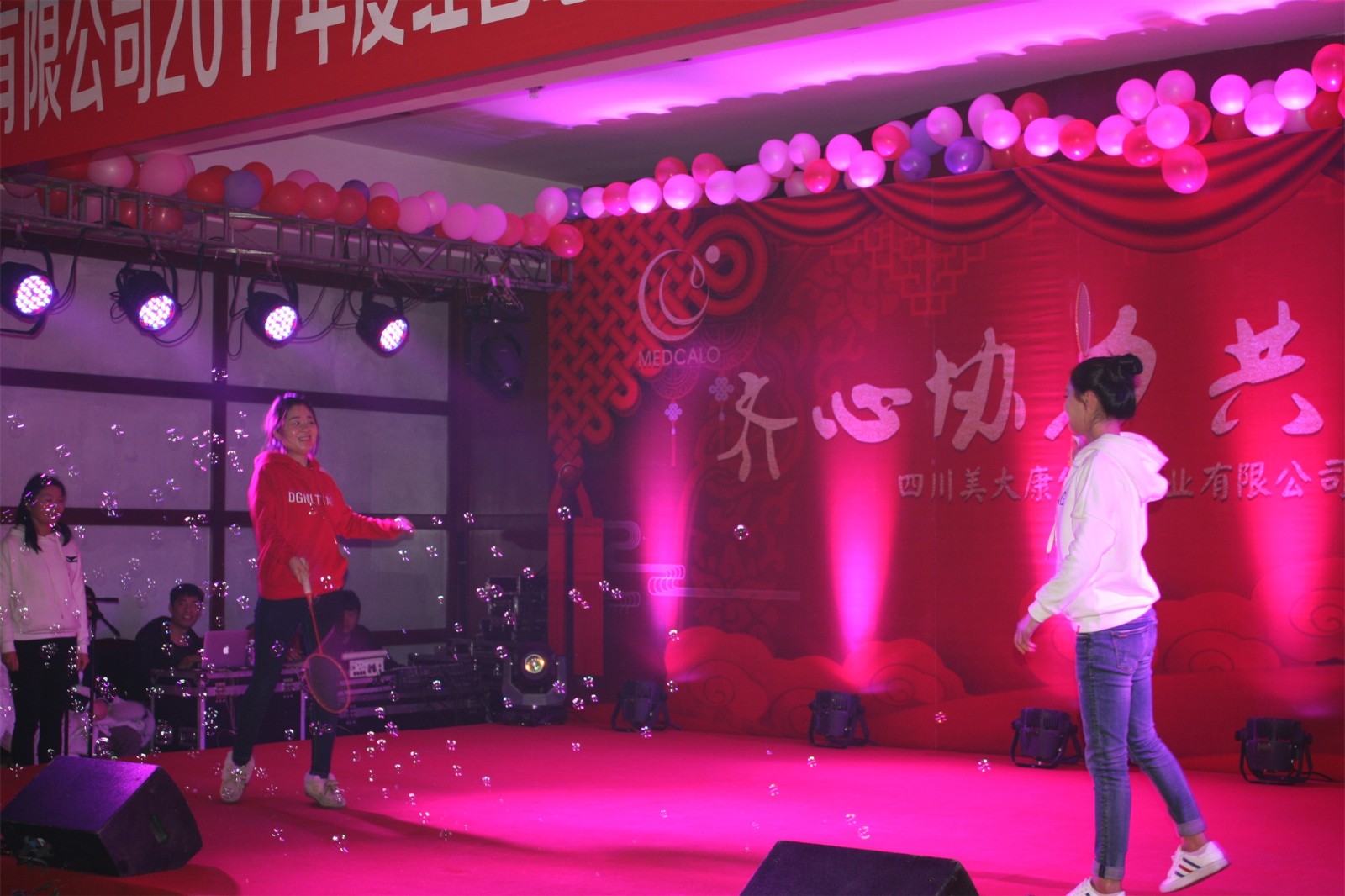 华美的服饰、娇俏的舞者,开场舞美丽中国拉开了新春团拜会的帷幕。小品抢红包把握当下全民互动的热点,把人们抢红包时各式各样的心理、行为等情形刻画得入木三分。营销中心的退伍同胞们表演的朗诵、小合唱咱当兵的人,在新时代中带领我们一同走进他们当初的芳华岁月,QC处员工照自然深情独唱情歌两三首,软袋车间管理层自编的朗诵——佳乐颂,歌颂、感恩这十几年来,大家和公司同舟共济的风雨路、成长路、幸福路,营销内勤自编自演的舞蹈童话镇,步伐轻盈,活泼灵动,仿佛让我们看到童话王国里俏皮的童话人物在给我们讲故事,黄金搭档周禄富和徐豪的相声洗脑2延续了去年的诙谐幽默,小合唱团结就是力量似画龙点睛之笔,提醒我们全体员工要聚力拧起一根绳,勇创新的辉煌。