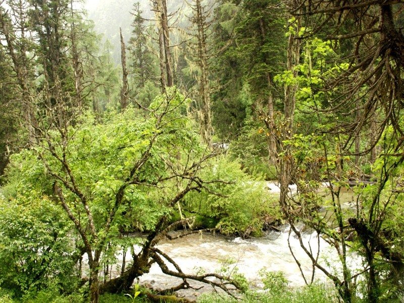 天空不作美,降雨降温,没见着蓝天白云,山上雾气缭绕,添加了毕棚沟的另一种韵味,还是那么美!
