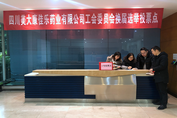 近日,四川美大康佳乐药业有限公司工会委员会进行了换届选举。本次选举由郝承吉组长,肖佑平副组长,谭晓羽、陈晓芳、寿小松组员负责换届选举工作的部署、执行和监督。